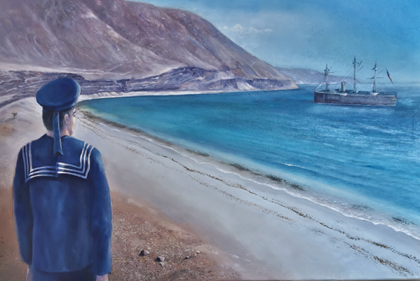El grumete Domingo Johnson Rodríguez inmortalizado por el pintor mejillonina Carlos Lichiok Miranda.